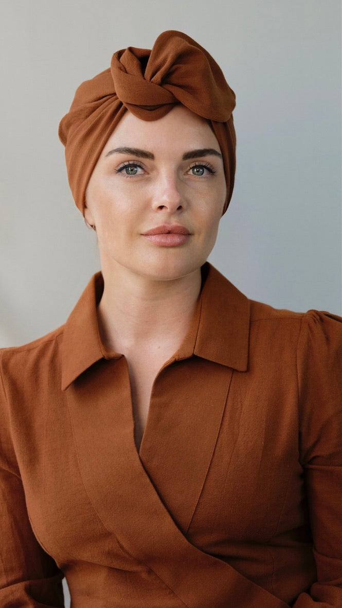 Welcome to our site dedicated to versatile turbans and headscarves designed for all women, regardless of their circumstances. My journey began with the desire to create something special for those going through challenging times, such as women undergoing chemotherapy or experiencing alopecia.