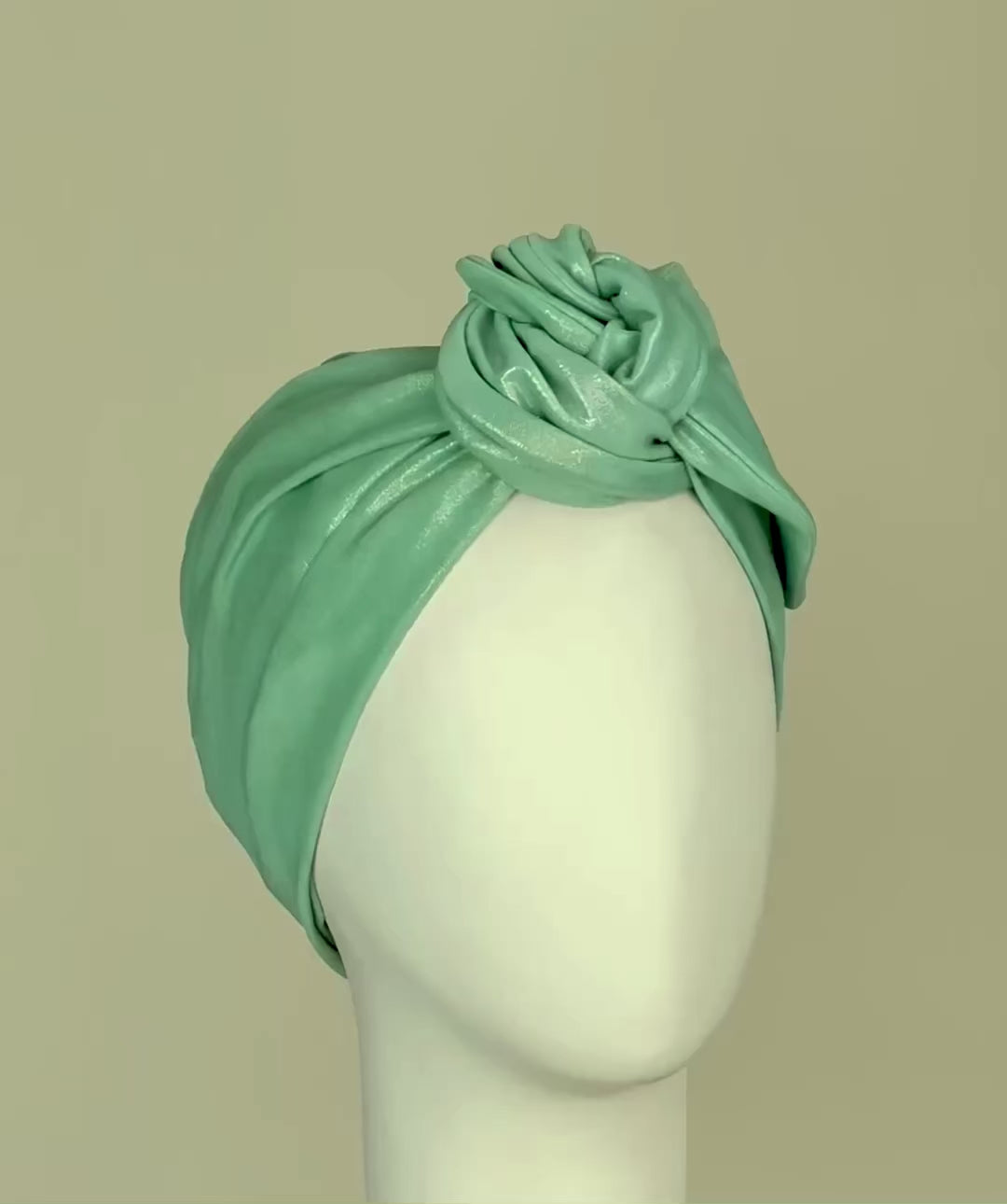 This turban is a unique design made from shimmer cotton jersey stretch.