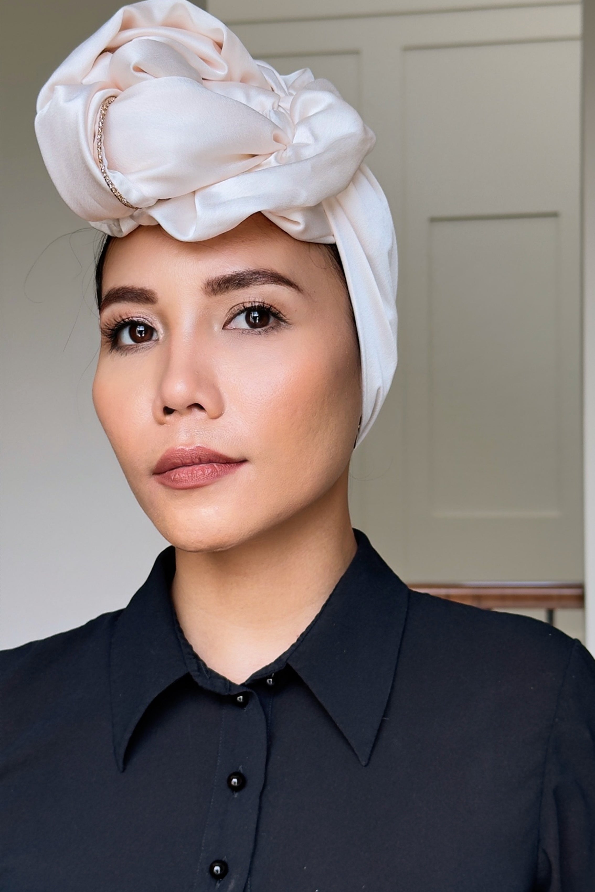 Foulard-turban intemporel blanc cassé